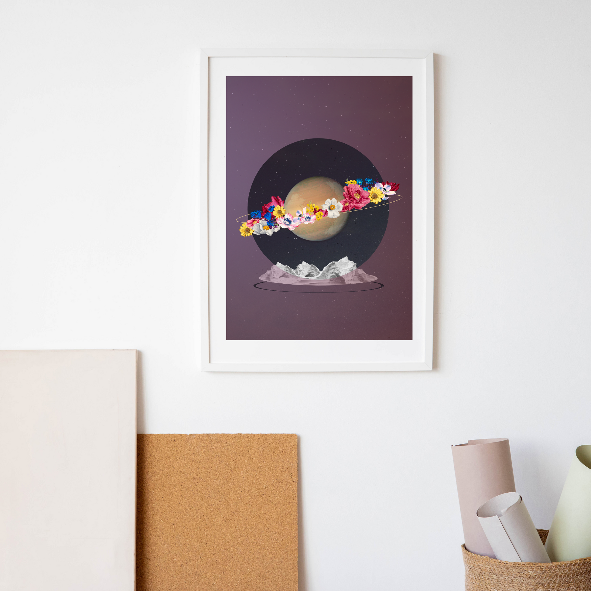 Το κολάζ "Blooming Planet" μετατρέπει κάθε δωμάτιο σε μια πύλη κοσμικής φαντασίας. Φτιαγμένο για ονειροπόλους, παρατηρητές άστρων και όσους αναζητούν την ομορφιά στο σύμπαν.