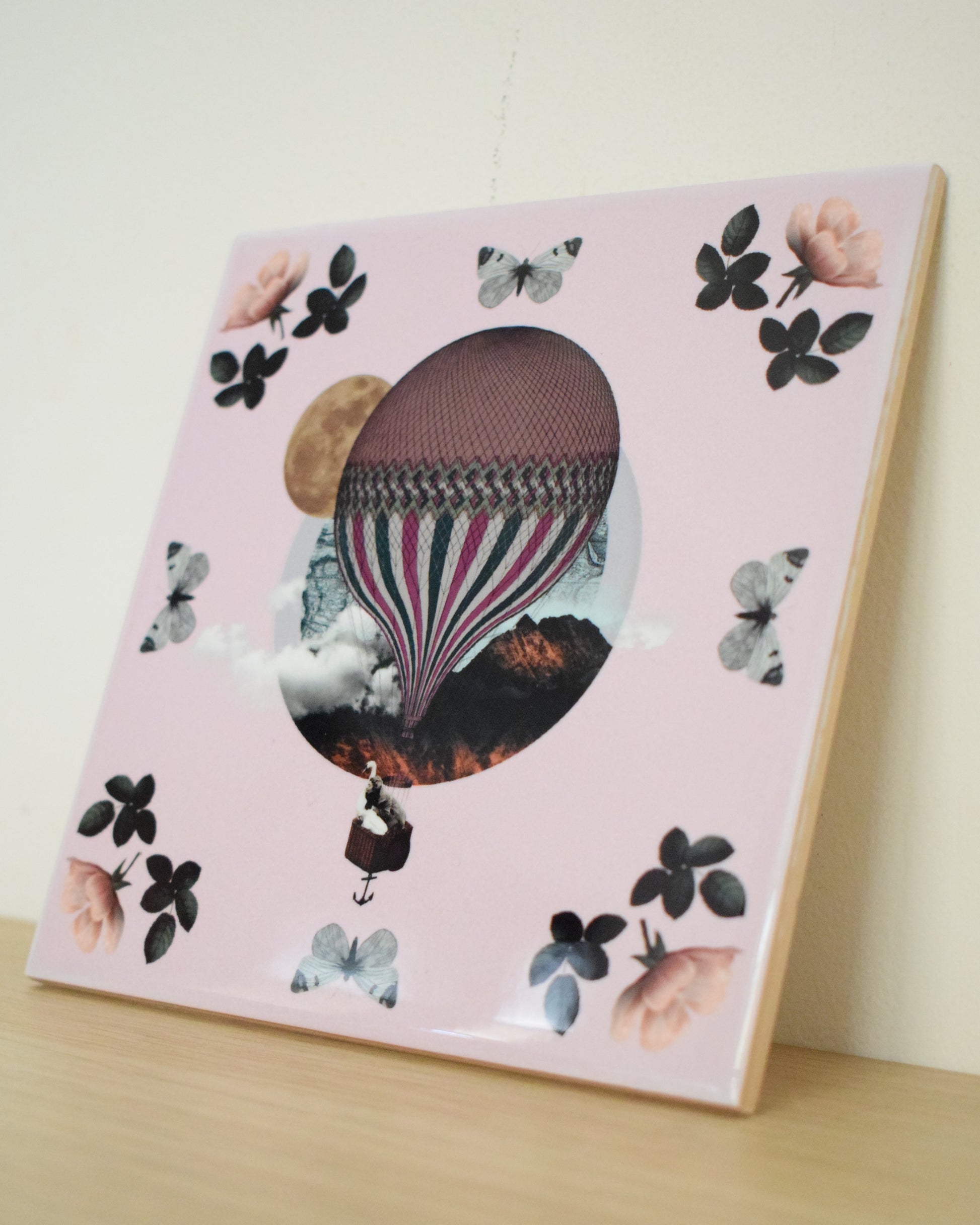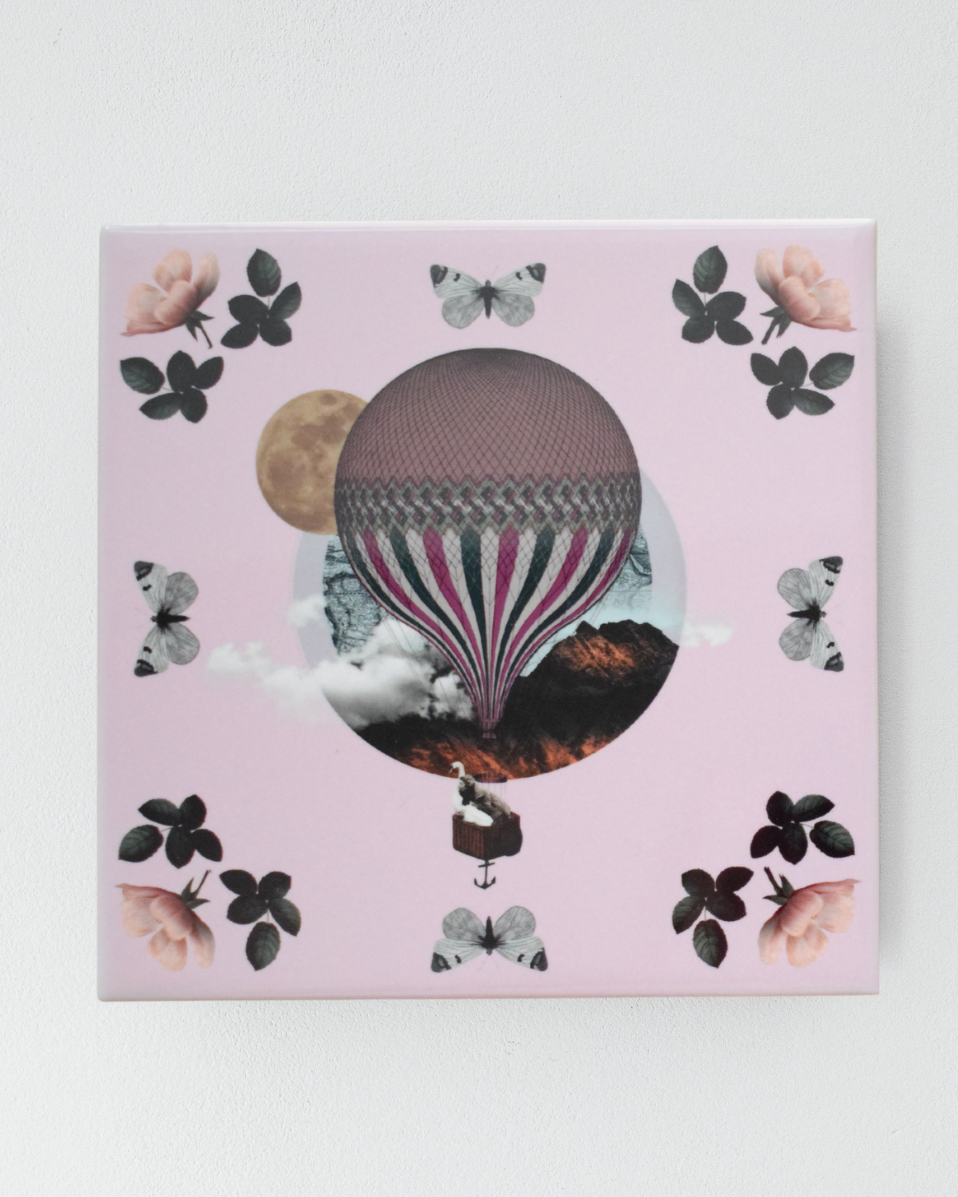 Το Pink Flight δημιουργήθηκε με την τεχνική του ψηφιακού κολάζ και μετατράπηκε σε πλακάκι που μπορείς να κρεμάσεις στον τοίχο σου. Ένα σουρεαλιστικό ταξίδι που θα χαρίσει στον χώρο σου ρομαντισμό και διάθεση εξερεύνησης!