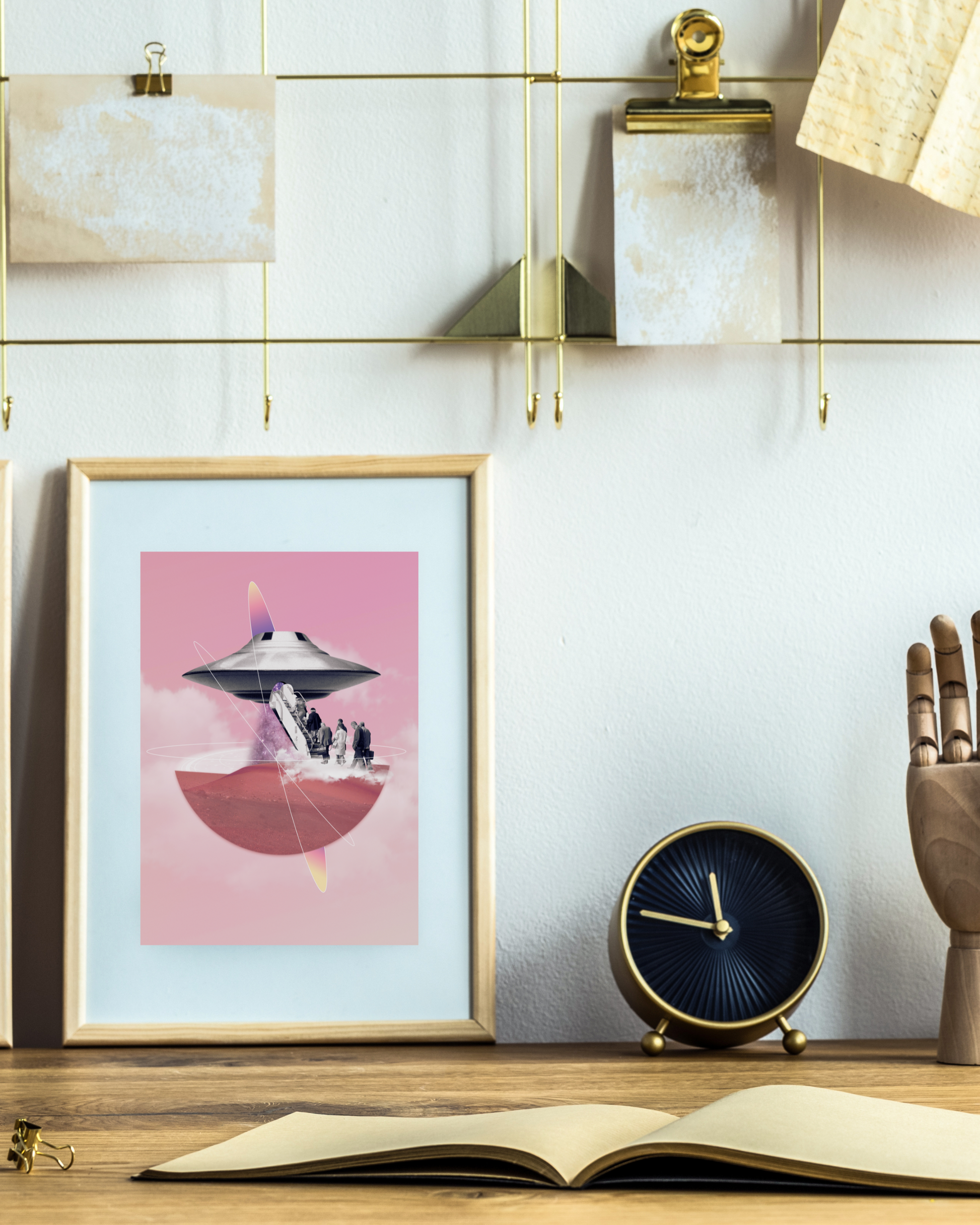 Το κολάζ «Shall we go?» αποτυπώνει τον ενθουσιασμό της αναχώρησης, τον ενθουσιασμό της εξερεύνησης νέων κόσμων και τη μαγεία της περιπέτειας πέρα από την καθημερινότητα. Ένα ρετρό ταξιδιωτικό έργο τέχνης, ιδανικό για να κεντρίσει την περιέργεια και τη φαντασία, φέρνει μια αίσθηση περιπέτειας, θαύματος και την αίσθηση ότι όλα είναι δυνατά.