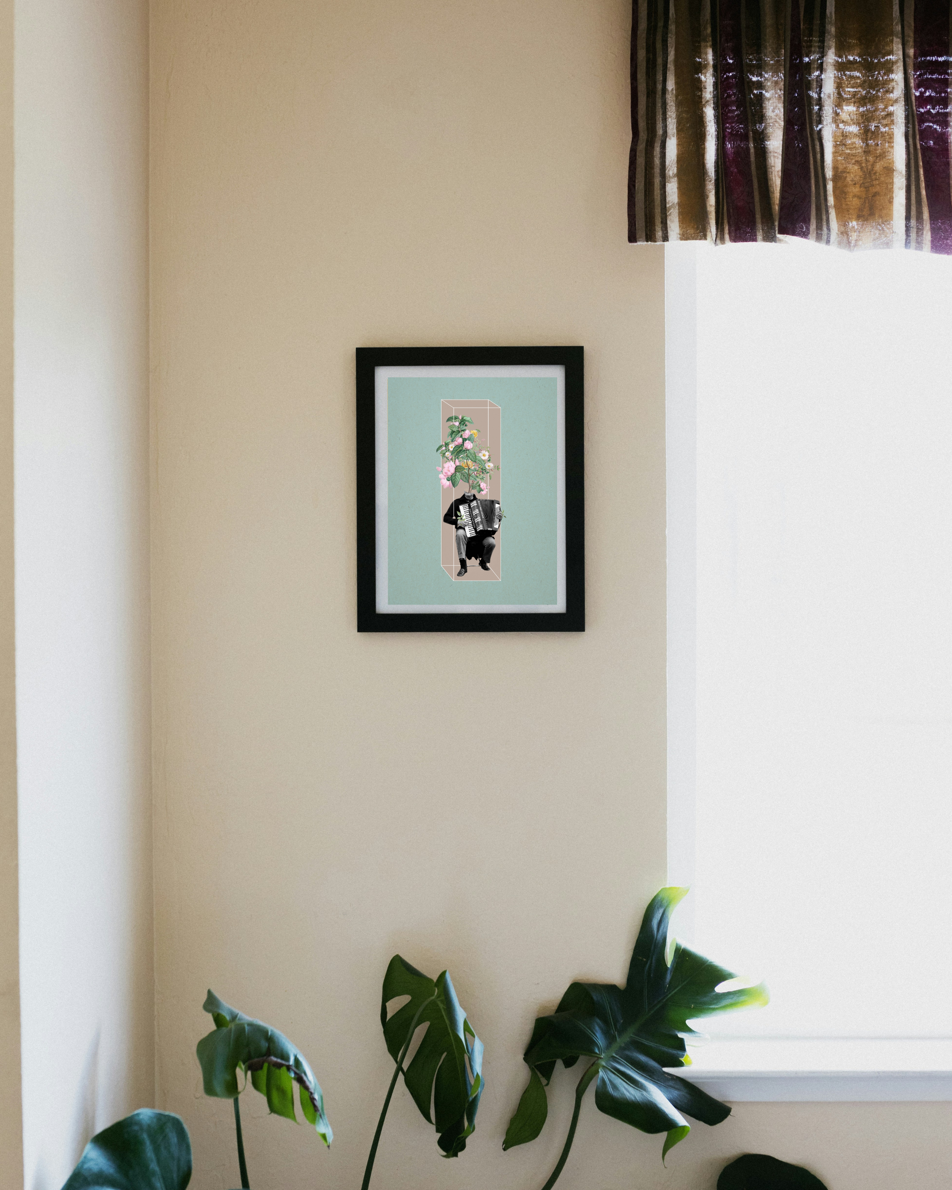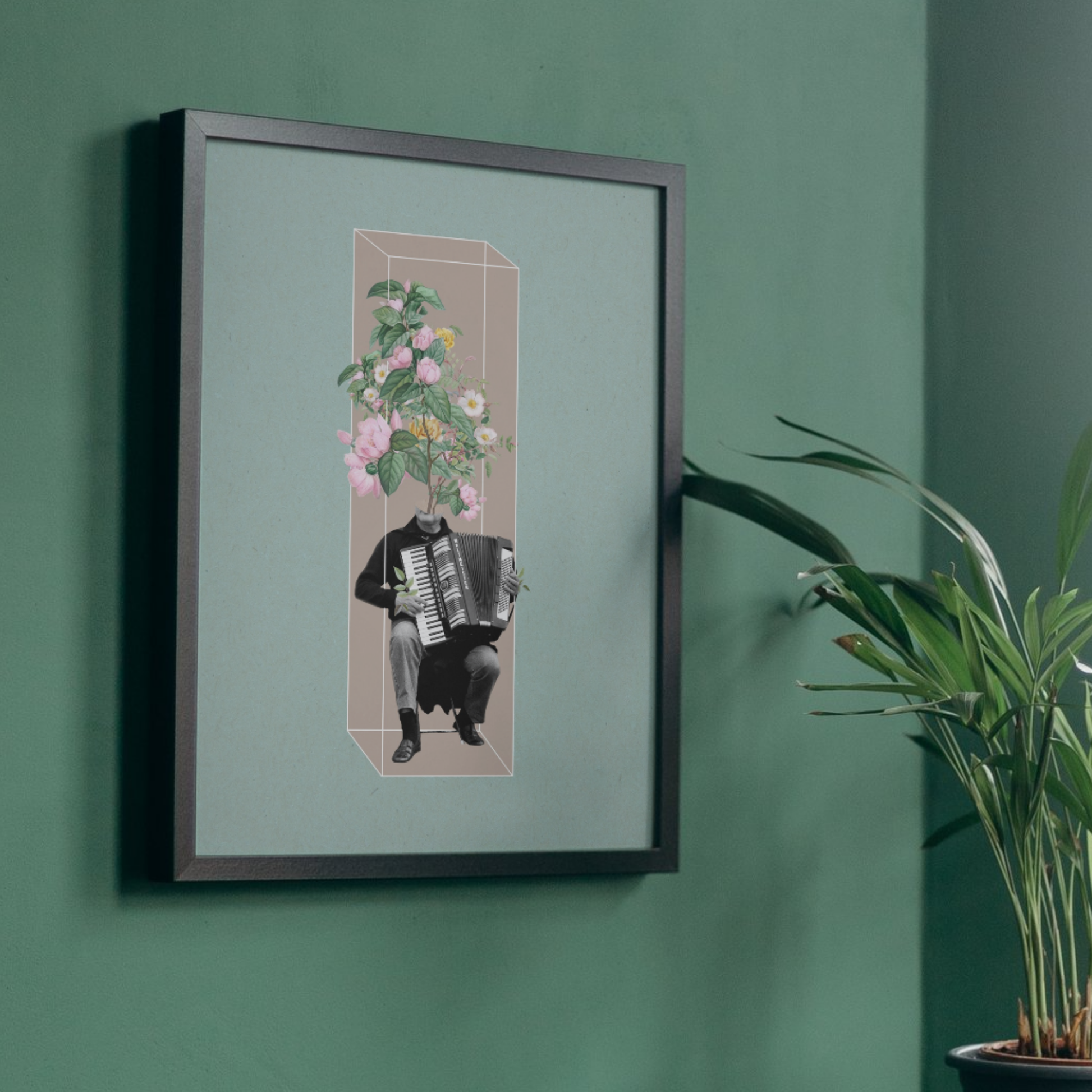 Ένας ακορντεονίστας του οποίου το κεφάλι μεταμορφώνεται σε έναν καταρράκτη από άνθη, αποτελεί μια οπτική συμφωνία που μιλάει στην καρδιά κάθε λάτρη της μουσικής.